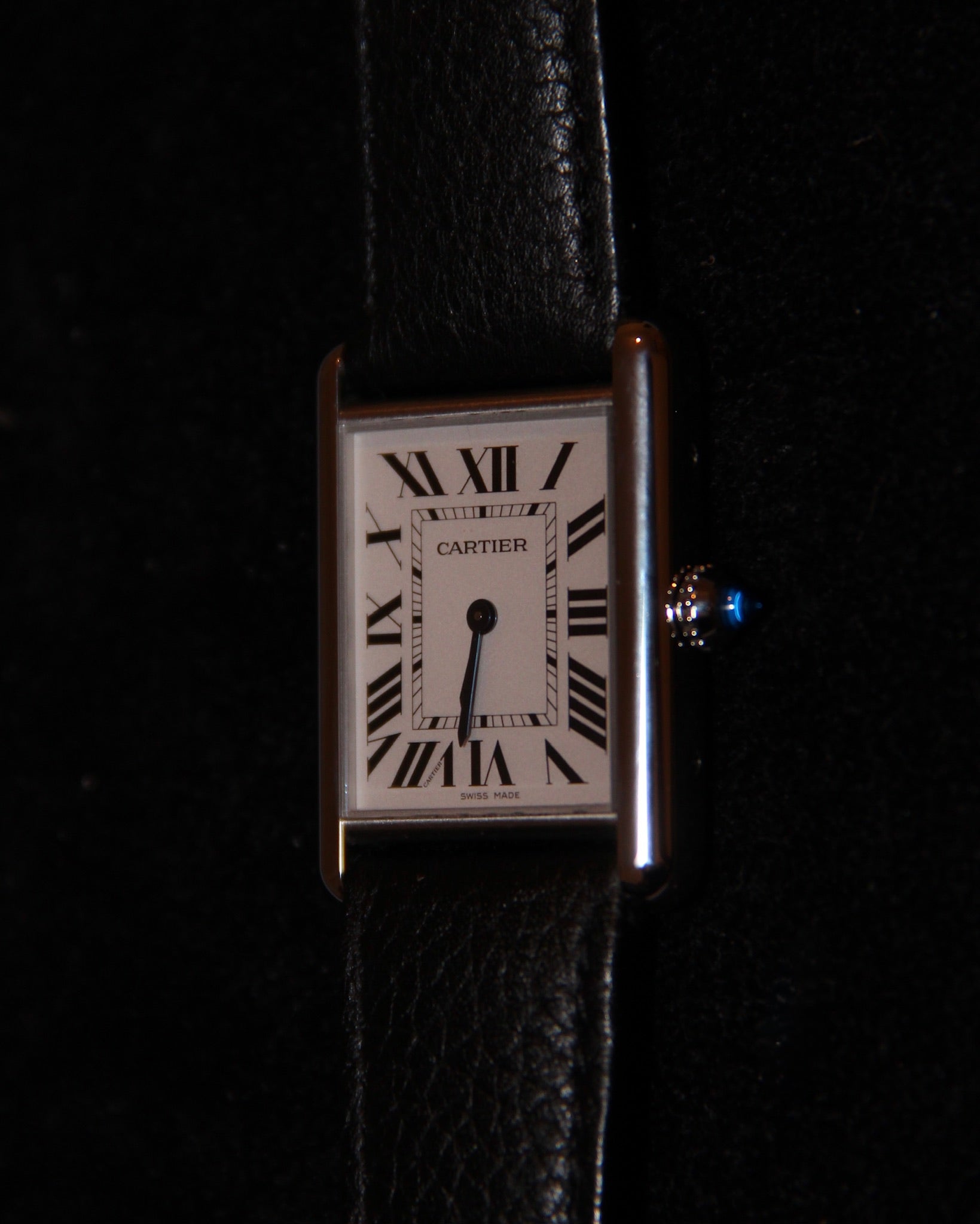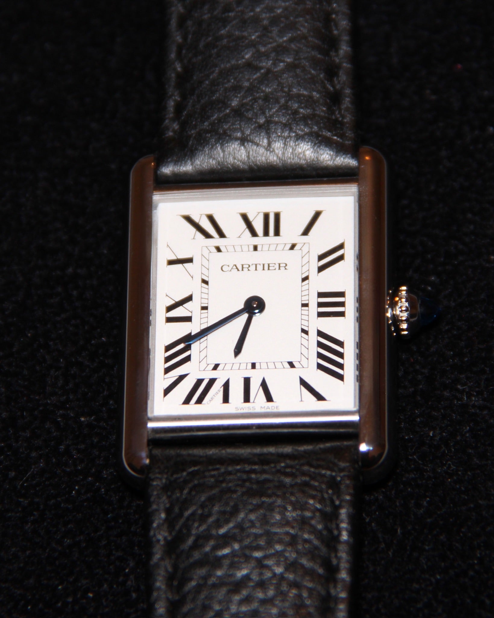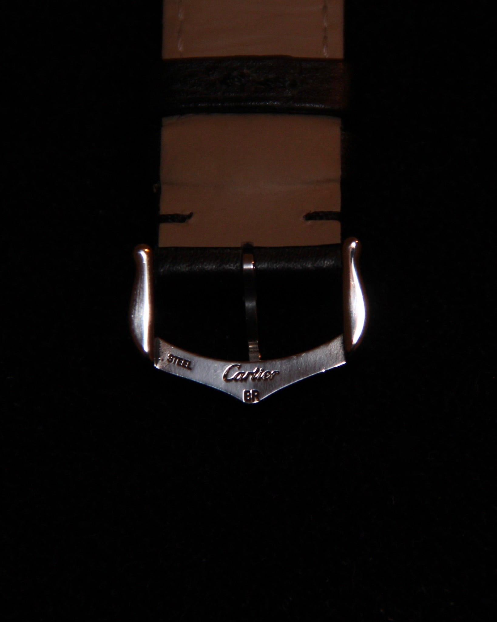 Inspirée du design original de la Tank Louis Cartier, cette version “Large” se distingue par son boîtier en acier poli, ses aiguilles bleuies et son cadran argenté à chiffres romains, immédiatement reconnaissable.
